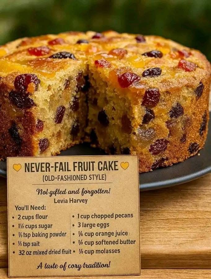 Here’s a nostalgic recipe for Never-Fail Fruit Cake, the kind that evokes sweet memories of Christmases past — wrapped in wax paper, drenched in love, and cherished for its timeless flavor.